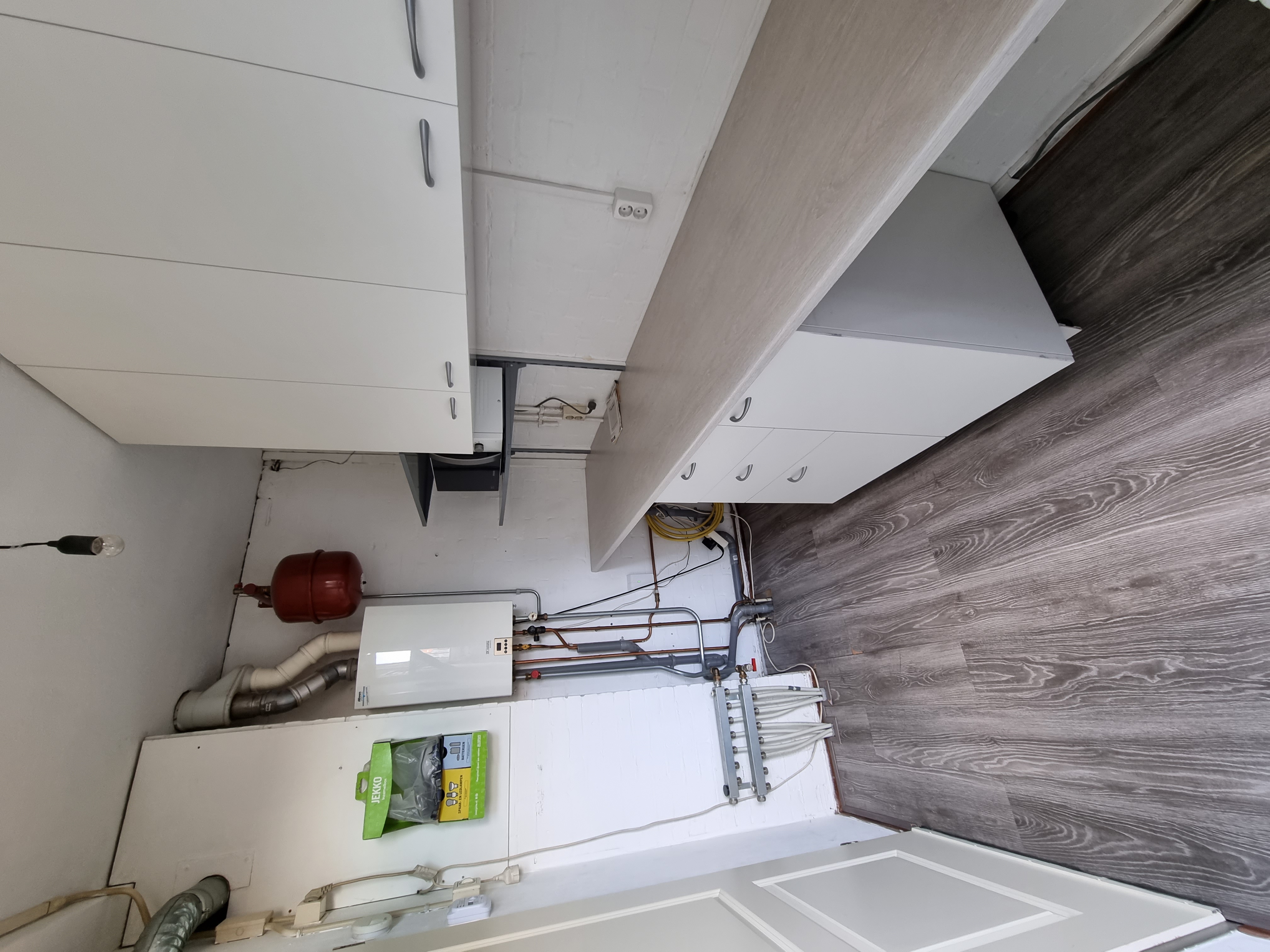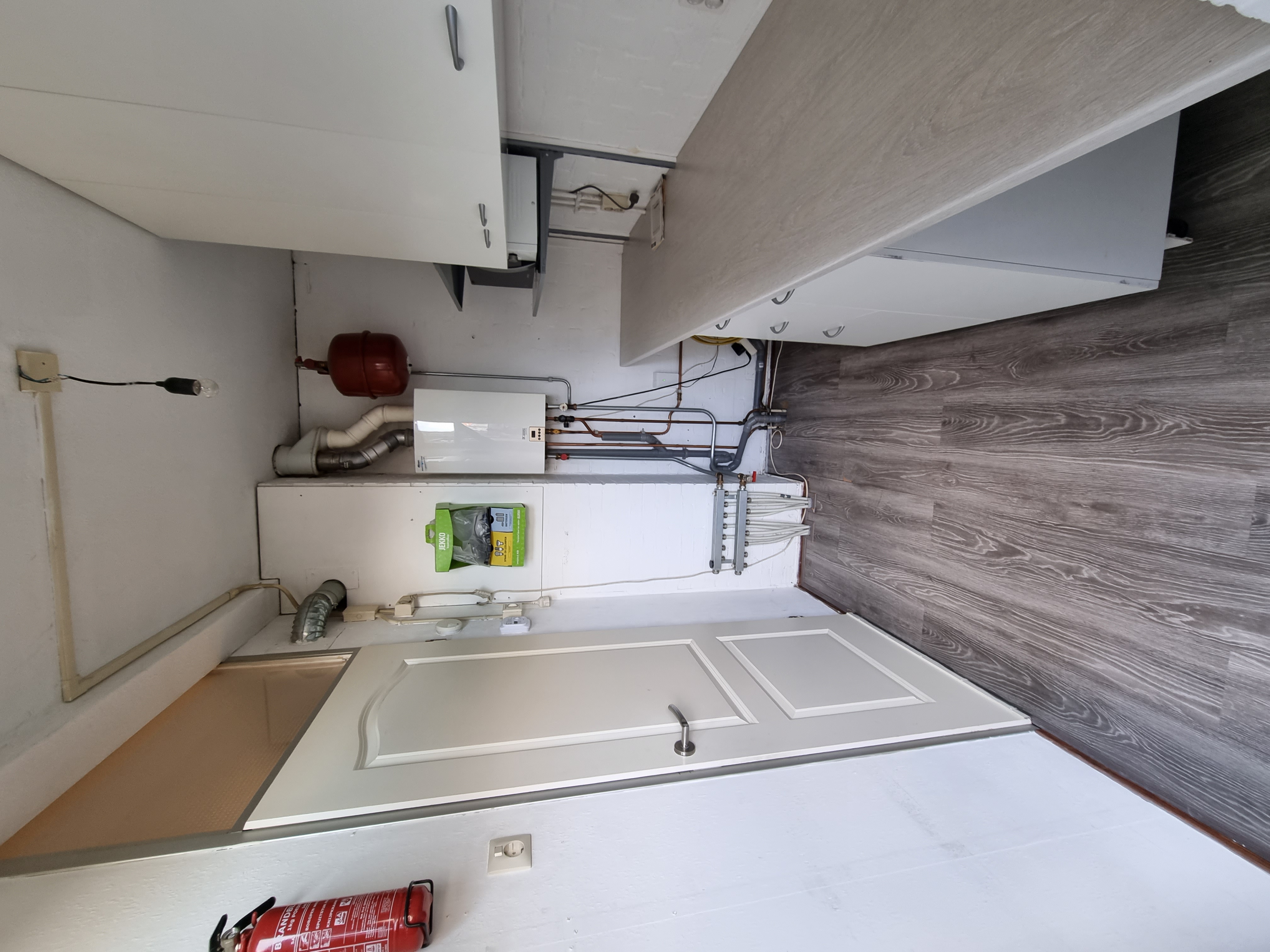 Vanuit de keuken is er direct toegang tot de bijkeuken die praktisch is ingericht. Hier tref je o.a. de wasmachine aansluiting aan alsmede de geplaatste cv. ketel in 2002.